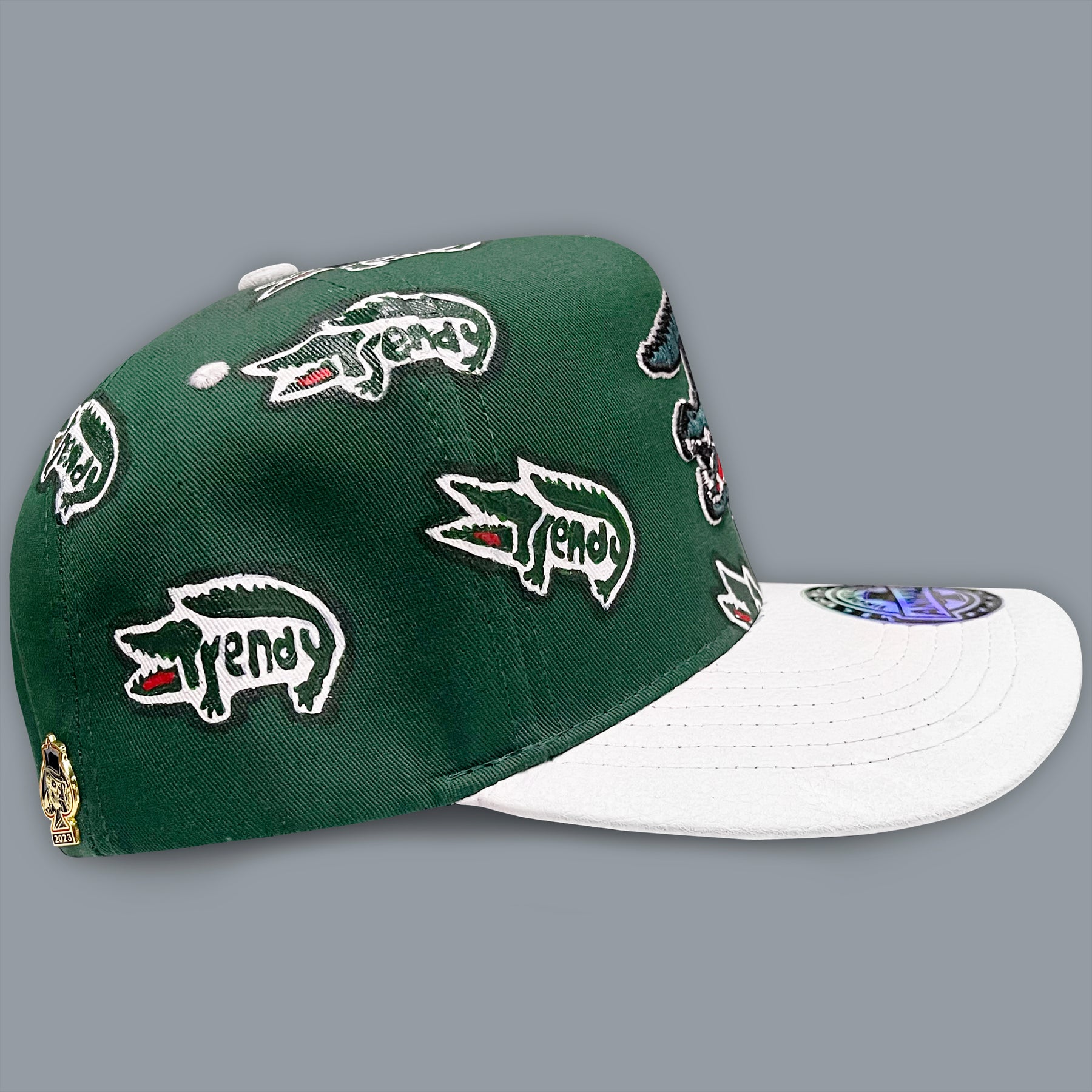 Gorra Verde con Visera Blanca y Diseño de Cocodrilos Domina el estilo con esta gorra premium que combina verde vibrante y visera blanca en contraste. El cocodrilo bordado en el frente captura la atención con detalles precisos, mientras que los cocodrilos pintados alrededor del perímetro crean un diseño envolvente y audaz. Perfecta para quienes buscan una pieza de streetwear que destaque sin comprometer la comodidad. Estructura resistente y acabados de calidad que reflejan tu personalidad única. Una declaración de estilo que funciona tanto en la ciudad como en cualquier ocasión casual.
