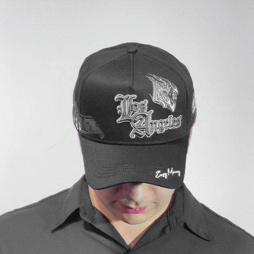 Gorra negra de alta calidad con diseño exclusivo que combina el logo y la palabra "Los Angeles" bordados con detalle. Presenta billetes en llamas bordados alrededor de la visera, creando un look audaz y llamativo. Perfecta para quienes buscan expresar su estilo con una prenda única y con carácter. El bordado de precisión garantiza durabilidad y un acabado profesional que destaca en cualquier outfit. Ideal para colecciones de moda urbana y streetwear.