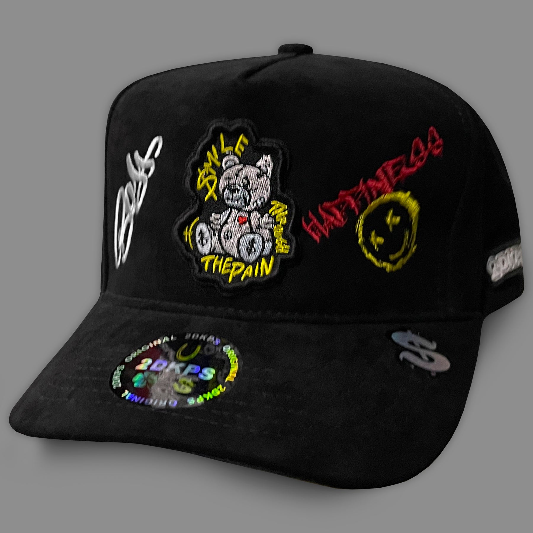 Esta gorra combina un diseño único con detalles bordados en amarillo, rojo y blanco que resaltan su estilo original. En el frente, un oso de peluche con cicatrices en microbordado aporta un toque distintivo que refleja personalidad y carácter. Perfecta para quienes buscan un accesorio que destaque y ofrezca una expresión auténtica en cada uso.