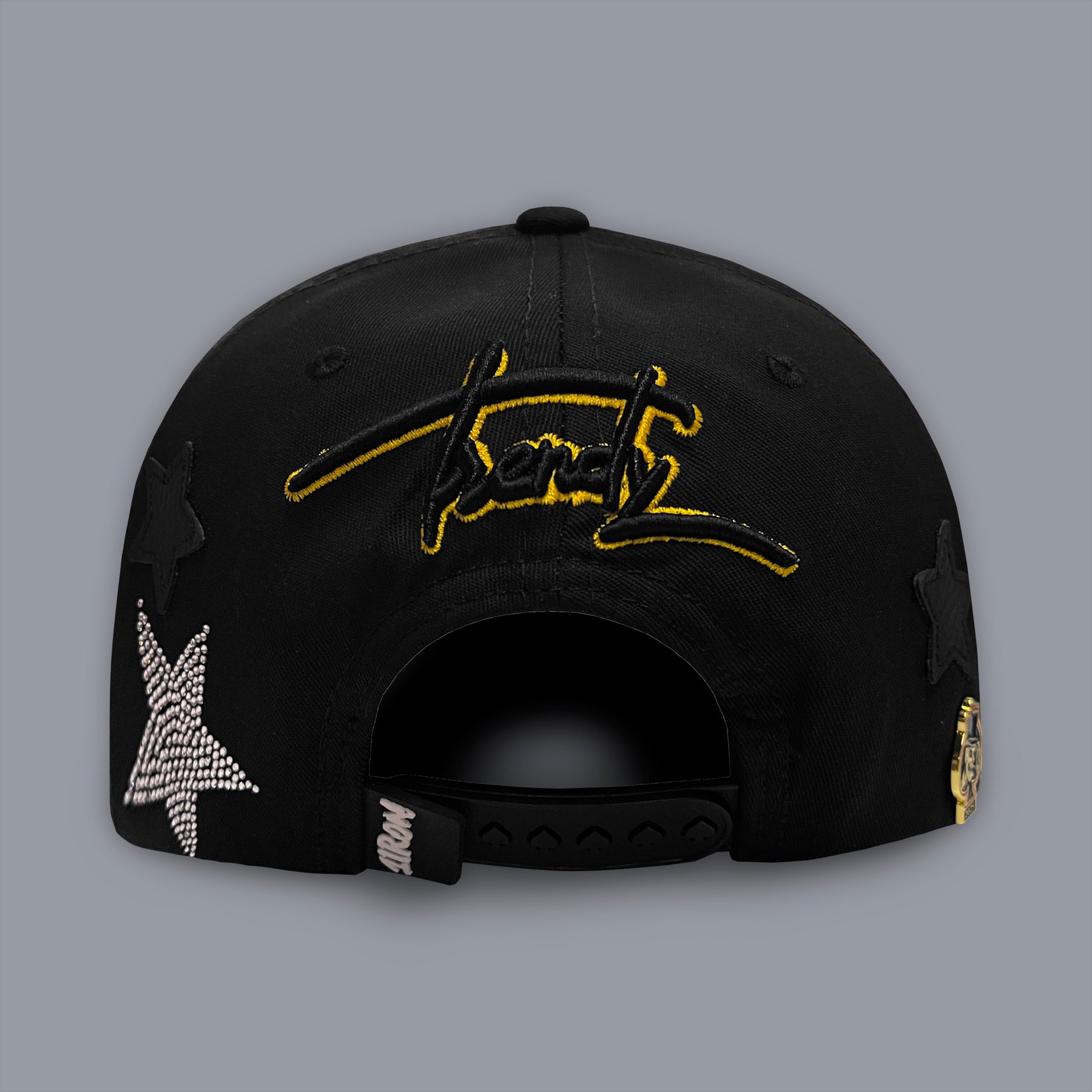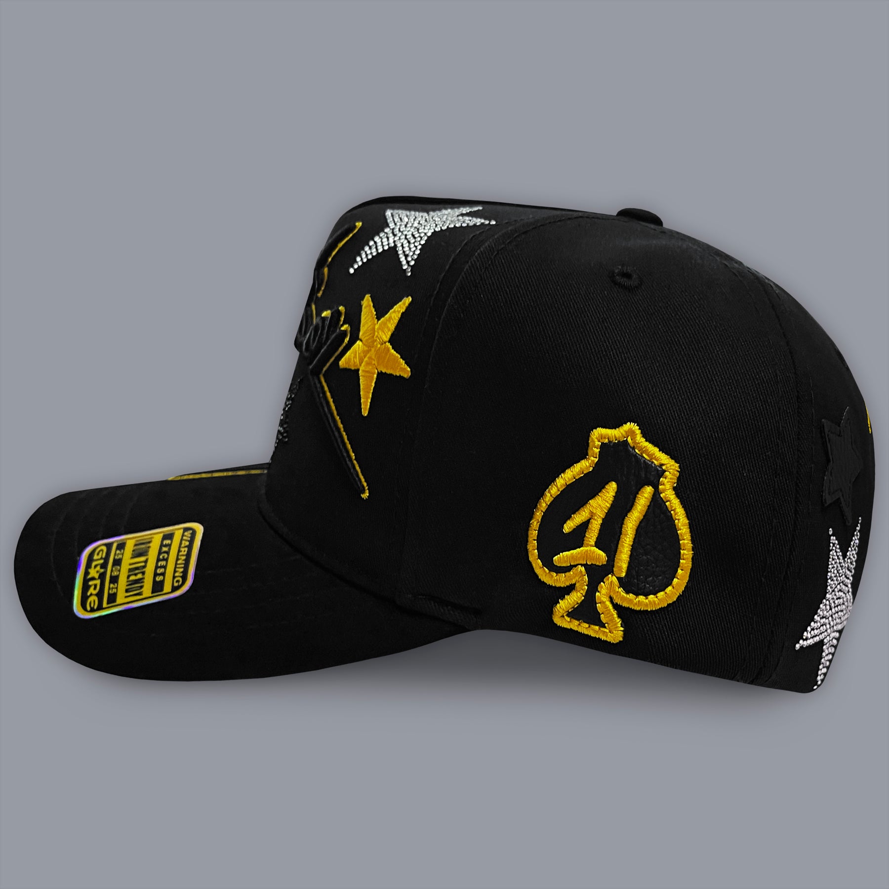 Gorra ajustable con diseño exclusivo que combina estrellas bordadas en cristales brillantes y vinil piel de alta calidad. Destaca el texto "STARBOY" en letras gigantes en el frente, perfecto para quienes buscan un accesorio con personalidad y estilo. Ideal para completar cualquier outfit casual o urbano con un toque de brillo y actitud. Material resistente que mantiene su forma y color con el uso diario.